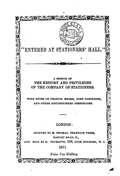 Harris, Michael, "The Stationers' Company in the City of London", in Myers, Robin (ed.), The Stationers' Company: A History of the Later Years 1800-2000, The Worshipful Company of Stationers & Newspaper Makers, 2001;